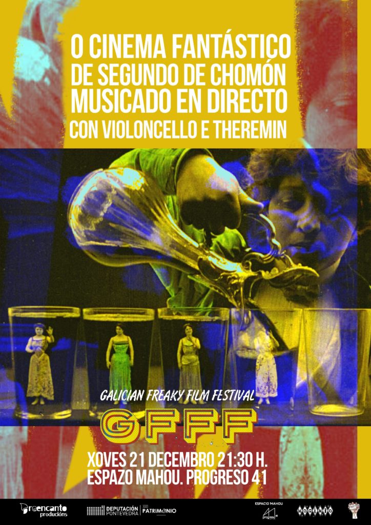 Nun tempo no que no cinema estaba todo por inventar, o pioneiro Segundo de Chomón, contemporáneo de Méliè, pensou no cinema como unha ferramenta para contar algo máis que a realidade, adiantouse aos tempos co stop motion, A fantasmagoría, fantasía e inxenio visionario que destilan moitas das súas pezas, conversan con música en directo na proposta que Macarena Montesinos e Paulo Pascual nos presentan. Violoncello, theremin e sonoridades de tecnoloxía actual convivindo co innovador cinema de principios do século XX.